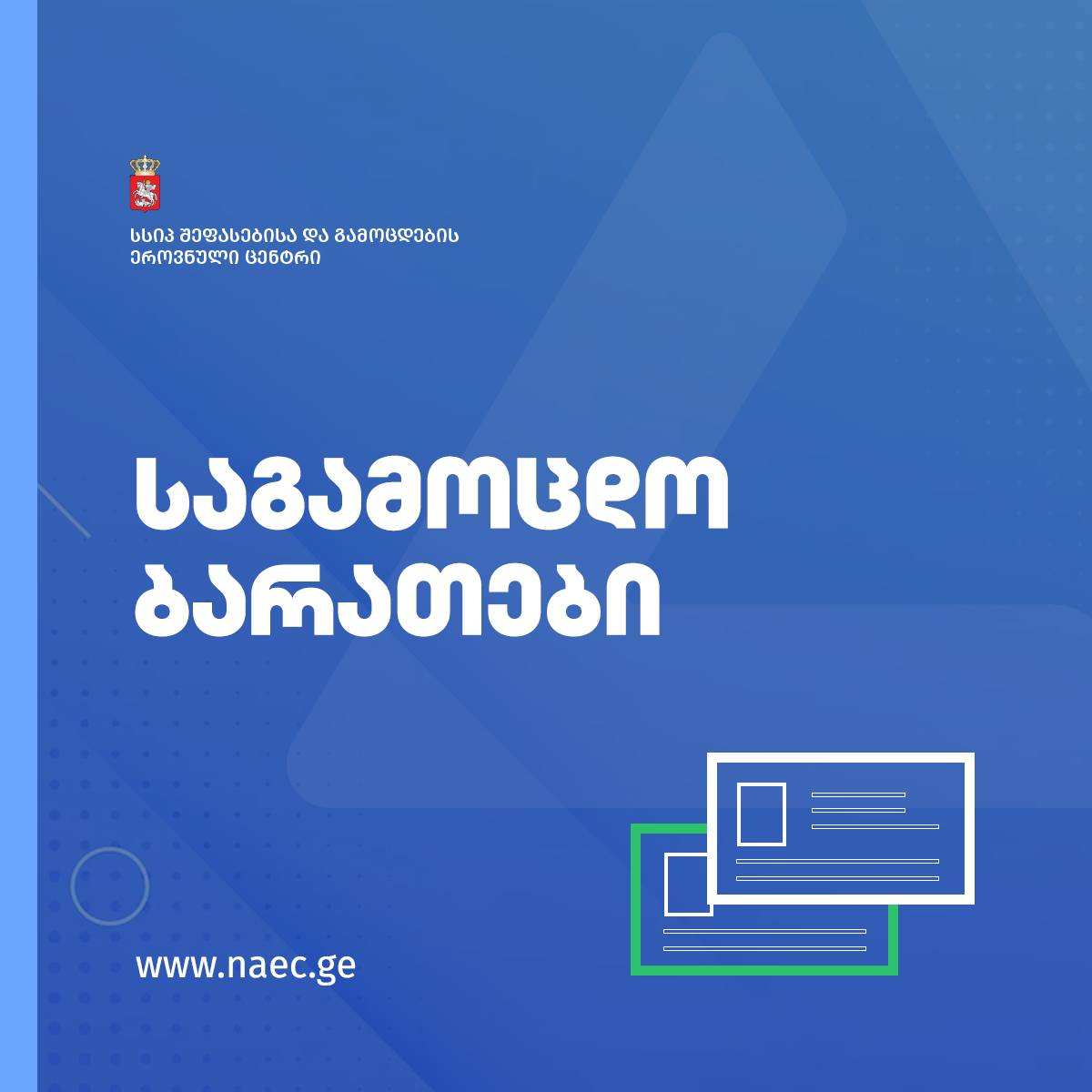 აბიტურიენტებს, სტუდენტთა საგრანტო კონკურსის მონაწილეებს, მაგისტრანტობის კანდიდატებს, მასწავლებლებსა და მასწავლებლობის მსურველებს საგამოცდო ბარათების ამობეჭდვა დღეიდან შეუძლიათ.