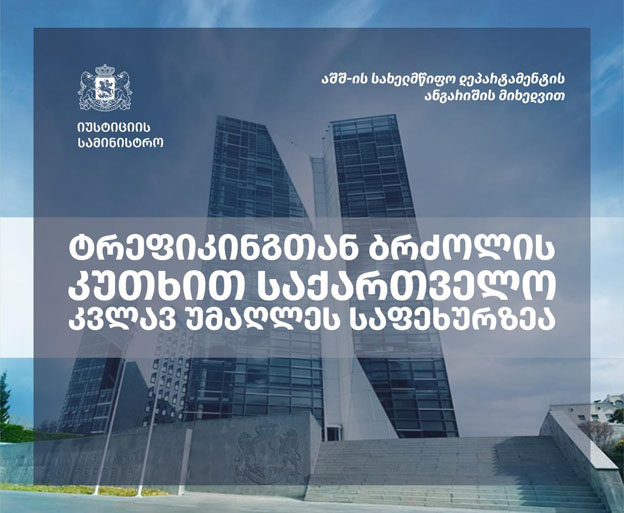 უწყების ინფორმაციით, აშშ-ის სახელმწიფო დეპარტამენტის ყოველწლიურ ანგარიშში ადამიანით ვაჭრობის თაობაზე, საქართველო კვლავ უმაღლეს საფეხურზეა ამ კუთხით განხორციელებული ღონისძიებებით და მსოფლიოს მასშტაბით 186 ქვეყანას შორის უკვე მე-9 წელია ინარჩუნებს ადგილს ე.წ. „პირველ კალათაში“.