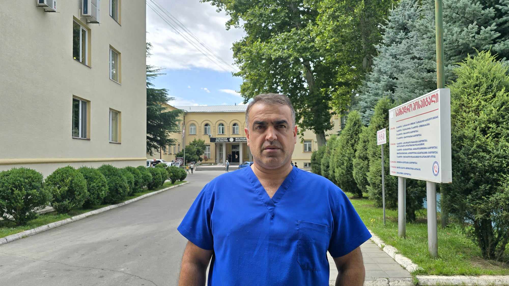 ,,მამაკაცი შემოყვანილია სასწრაფო დახმარების ბრიგადის მიერ 30 ივლისს მძიმე მდგომარეობაში. ჩატარებული კვლევებით გამოვლინდა თავის ტვინის ტრავმული დაზიანებატრავმული სუბდურული სისხლჩაქცევა, ასევე თავის ტვინის ჰემორაგიული დაჟეჟილობა და ქალა-სარქვლის მოტეხილობა თავის ტვინის შეშუპება ცდომით. სასიცოცხლო ჩვენებით ჩაუტარდა ნეიროქირურგიული ოპერაცია და გადმოყვანილია რეანიმაციულ განყოფილებაში. ამჟამად პაციენტის მდგომარეობა არის კრიტიკული, უგრძელდება შესაბამისი მკურნალობა და ინტენსიური თერაპია ზოგადრეანიმაციულ განყოფილებაში“, - განაცხადა ზურაბ ნადირაშვილმა.