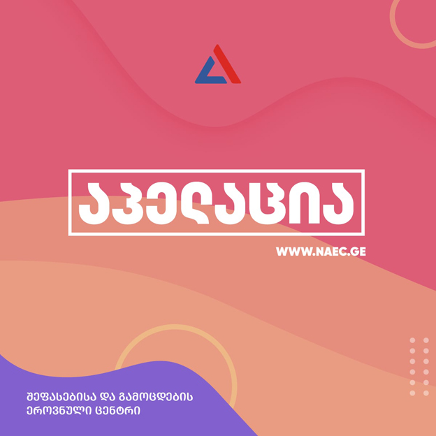 შეფასებისა და გამოცდების ეროვნული ცენტრის ინფორმაციით, სააპელაციო განაცხადები მხოლოდ ელექტრონულად ვებგვერდზე: online . naec . ge მიიღება