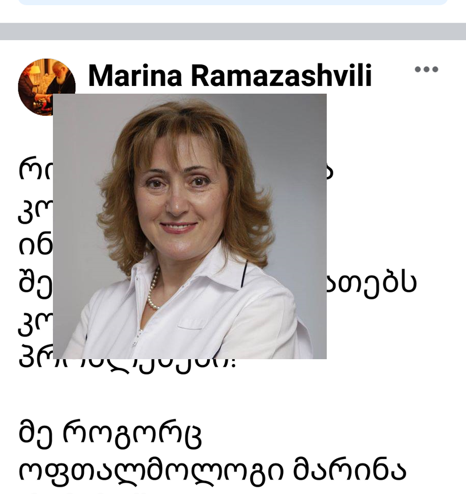 მე, როგორც ოფთალმოლოგი მარინა რამაზაშვილი, თვითიზოლაციაში მყოფ ყველა პირს გავუწევ უფასო პროფესიონალურ ონლაინ დახმარებას თვალთან დაკავშირებულ საკითხებზე!