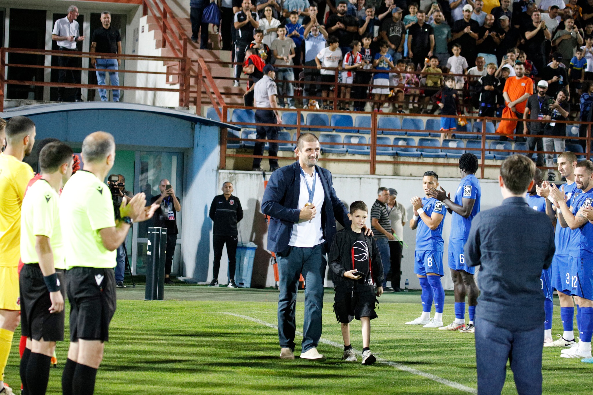 ორივე გუნდის მოთამაშეებმა ოლიმპიურ ჩემპიონს საპატიო კორიდორი მოუწყეს. გორის „დილას“ კლუბის აღმასრულებელმა დირექტორმა - გიორგი ჯოხაძემ და სპორტულმა დირექტორმა ვანო ხორგუაშვილმა კი იგი სიმბოლური მაისურით დააჯილდოვეს.