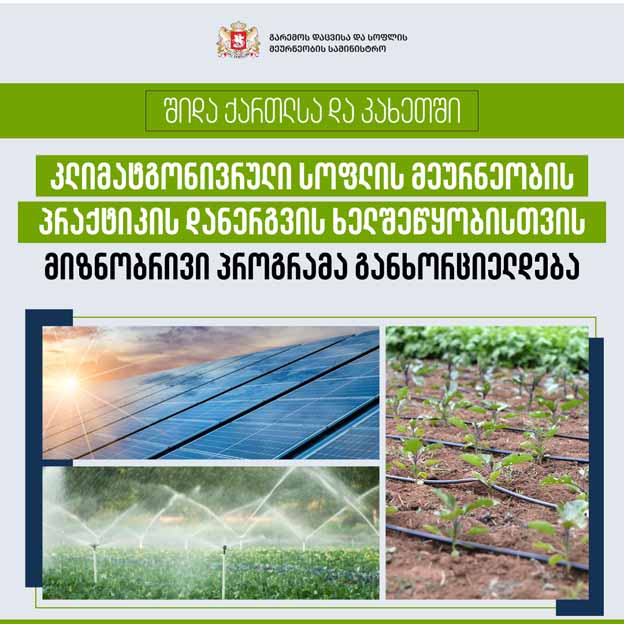 პროგრამას, რომლის მიზანი კლიმატგონივრული სოფლის მეურნეობის პრაქტიკის დანერგვის ხელშეწყობაა, სოფლის განვითარების სააგენტო განახორციელებს.