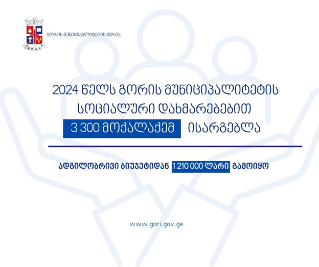 2024 წელს გორის მერიის სოციალური პროგრამით 3 300-მდე მოქალაქემ ისარგებლა და მათ დასახმარებლად ადგილობრივი ბიუჯეტიდან 1 210 000 ლარი გამოიყო.