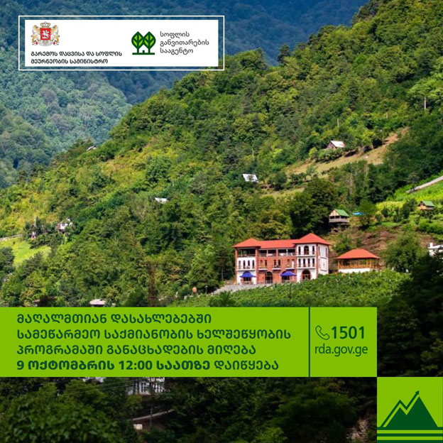 მაღალმთიან დასახლებებში სამეწარმეო საქმიანობის ხელშეწყობის პროგრამაში განაცხადების მიღება 9 ოქტომბერს 12:00 საათიდან განახლდება.