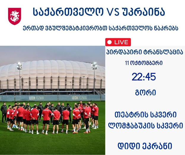 გორის თეატრის და „ლომჭაბუკის“ სკვერში საქართველო-უკრაინის საფეხბურთო მატჩის პირდაპირი ტრანსლაცია გაიმართება.