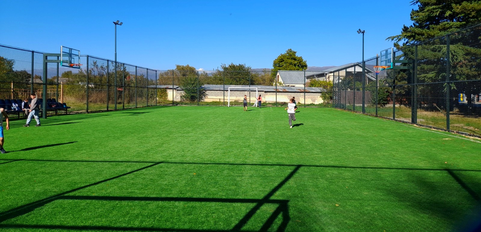 პროექტის მიხედვით მოეწყო ხელოვნური საფარი, ღობე, კალათბურთის ფარები, ფეხბურთის კარები, ასევე, დამონტაჟდა განათება.