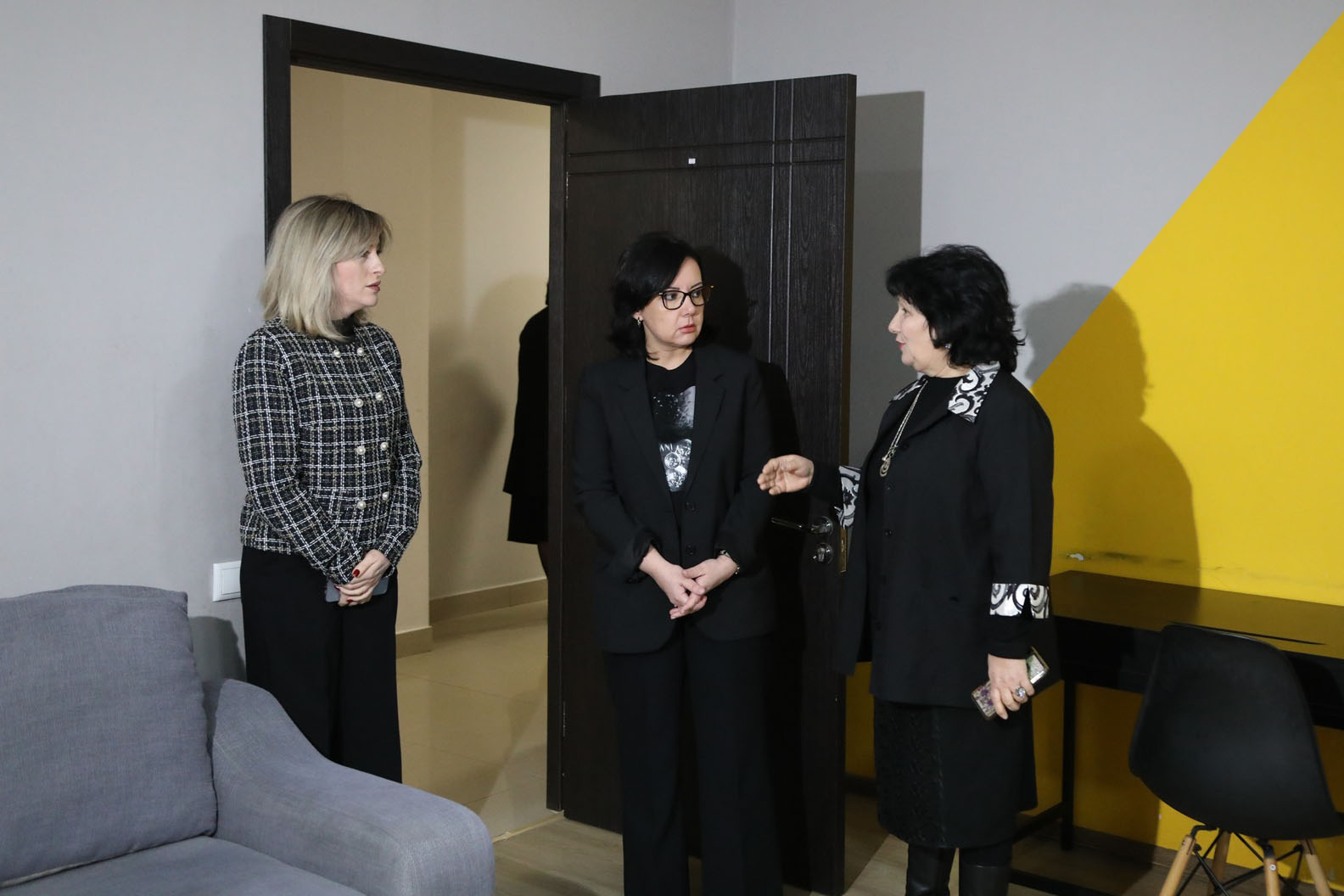 დევნილთა, შრომის, ჯანმრთელობისა და სოციალური დაცვის მინისტრის მოადგილემ ირინე წაქაძემ და სახელმწიფო ზრუნვის სააგენტოს დირექტორმა რუსუდან კოხოძემ განახლებული, გარემონტებული და სრულად აღიჭურვილი საცხოვრებელი ოთახები დაათვალიერეს და ბენეფიციარების საჭიროებებს ადგილზე გაეცნენ.