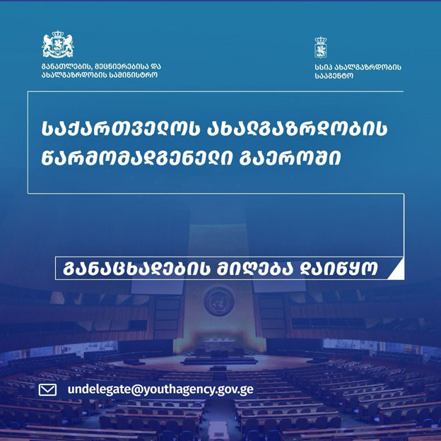 საკონკურსო განაცხადები 2025 წლის 4 მარტის ჩათვლით, ელექტრონულ ფოსტაზე - UNDelegate @ youthagency. gov. ge მიიღება.