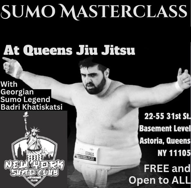 გორელი სუმოისტი ბადრი ხატისკაცი ნიუ-იორკის სუმოს კლუბში სპორტსმენებისთვის და დაინტერესებული საზოგადოებისთვის მასტერკლასებს ატარებს.