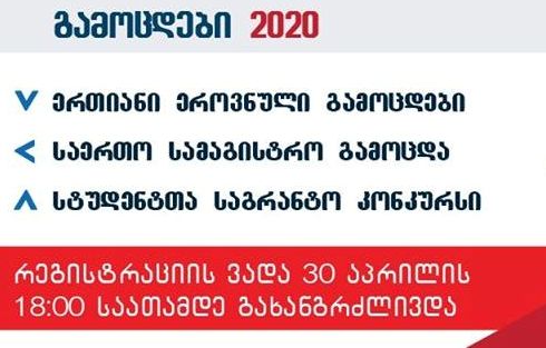„2020 წლის გამოცდებში მონაწილეობის მსურველთა ინტერესების გათვალისწინებით და შექმნილი ვითარებიდან გამომდინარე, საქართველოს განათლების, მეცნიერების, კულტურისა და სპორტის სამინისტროსა და შეფასებისა და გამოცდების ეროვნული ცენტრის გადაწყვეტილებით, რეგისტრაციის ვადა გამოცდებისათვის, საერთო სამაგისტრო გამოცდისა და სტუდენტთა საგრანტო კონკურსისათვის 30 აპრილის 18 საათამდე გახანგრძლივდა. აქვე გაცნობებთ, რომ თუ აპლიკანტს გამოცდის დროს ესაჭიროება სპეციალური პირობების/სპეციფიკური საგამოცდო გარემოს შექმნა და მან რეგისტრაციისას მონიშნა ან მონიშნავს შესაბამის გრაფას, ჯანმრთელობის მდგომარეობის შესახებ შესაბამისი ცნობა (ფორმა №100) 16 აპრილის ნაცვლად, 30 აპრილის 18:00 საათამდე უნდა წარმოადგინოს. ნებისმიერი დამატებითი ცვლილების შესახებ ინფორმაცია დაუყოვნებლივ გამოქვეყნდება საქართველოს განათლების, მეცნიერების, კულტურისა და სპორტის სამინისტროს, ასევე შეფასებისა და გამოცდების ეროვნული ცენტრის ოფიციალურ ფეისბუქ და ვებგვერდებზე“, - ნათქვამია უწყების მიერ გავრცელებულ ოფიციალურ ინფორმაციაში.