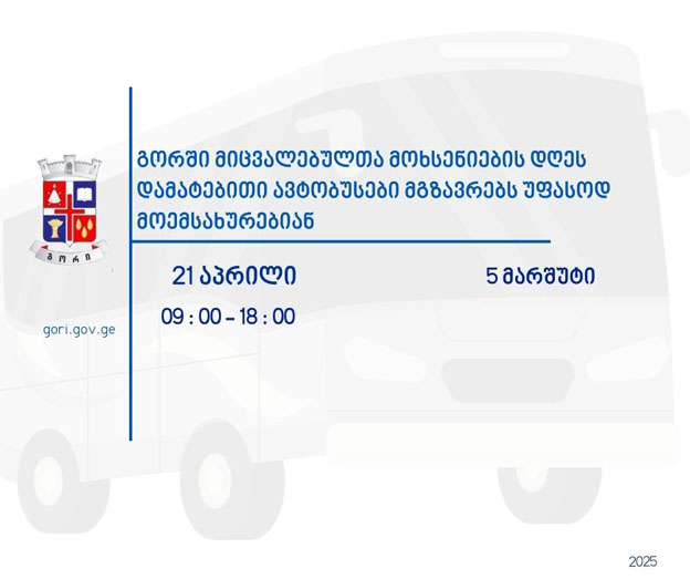 მიცვალებულთა მოხსენიების დღეს, 21 აპრილს, დამატებითი ავტობუსები გორში უფასოდ09:00 - დან18:00 საათამდე იმოძრავებს.