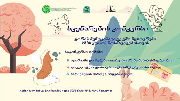 გორის მუნიციპალიტეტის განვითარებისა და ტანისა და თეძმის დაცული ლანდშაფტის მართვის სააგენტომ, არასამთავრობო ორგანიზაცია „ჭკვიანი მომავალი“ მხარდაჭერით, გორის მუნიციპალიტეტის სკოლების მოსწავლეებისთვის სცენარების კონკურსი გამოაცხადა.