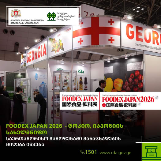 „საერთაშორისო გამოფენა - „FOODEX JAPAN 2026“ იაპონიის დედაქალაქ ტოკიოში 2026 წლის 10-13 მარტს გაიმართება და მინაწილეებს საშუალებას აძლევს, დაამყარონ საქმიანი კავშირები ადგილობრივ და უცხოელ ბიზნესოპერატორებთან.