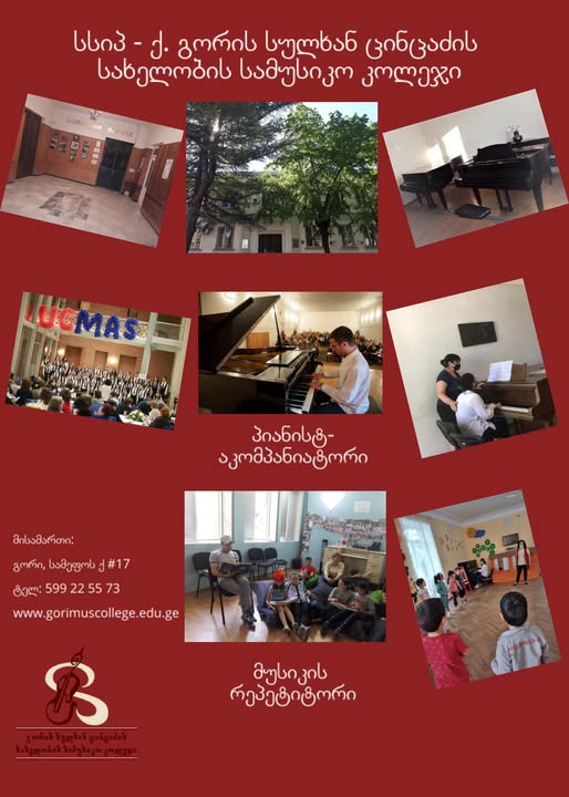 სულხან ცინცაძის სახელობის გორის სამუსიკო კოლეჯი პროფესიულ საგანმანათლებლო პროგრამებზე მიღებას აცხადებს.