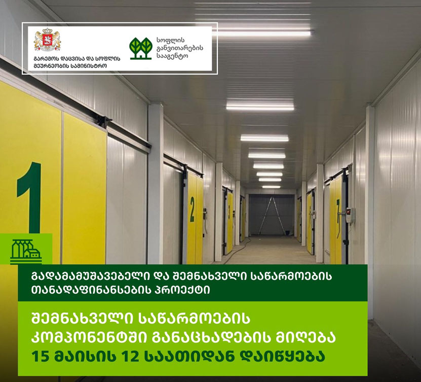 სოფლის განვითარების სააგენტოს ინფორმაციით, შემნახველი საწარმოების კომპონენტში განაცხადების მიიღება იწყება.
