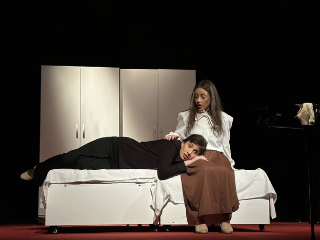 სპექტაკლში ორი მსახიობი - ელენე დარჩია და ანა ლევენეცი მონაწილეობს.