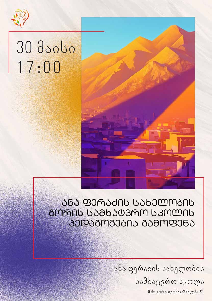გორის მუნიციპალიტეტის კულტურის განვითარების ხელშეწყობის სააგენტოს ანა ფერაძის სახელობის გორის სამხატვრო სკოლაში (მის.: გორი, ფარნავაზის ქ. 1) ნამუშევრების გამოფენა დღეს, 30 მაისს მოეწყობა.