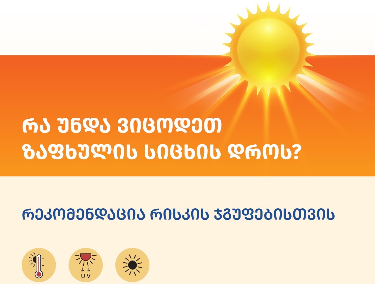 დევნილთა, შრომის, ჯანმრთელობისა და სოციალური დაცვის სამინისტრო ზაფხულის სეზონთან დაკავშირებით მოსახლეობას რეკომენდაციებით მიმართავს. სპეციალისტების თქმით, მაღალი ტემპერატურა განსაკუთრებით საშიშია ბავშვებისათვის, მოხუცების და ქრონიკული დაავადების მქონე პირებისათვის.