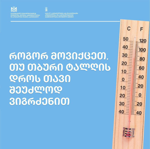 დაავადებათა კონტროლისა და საზოგადოებრივი ჯანდაცვის ეროვნული ცენტრი მოსახლეობას რეკომენდაციებით მიმართავს. სპეციალისტების თქმით, ზაფხულის ცხელ პერიოდში, ხშირია თბური ტალღის დროს შეუძლოდ გახდომის შემთხვევები და რეაგირება სიმპტომების გამოვლენისთანავეა საჭირო.