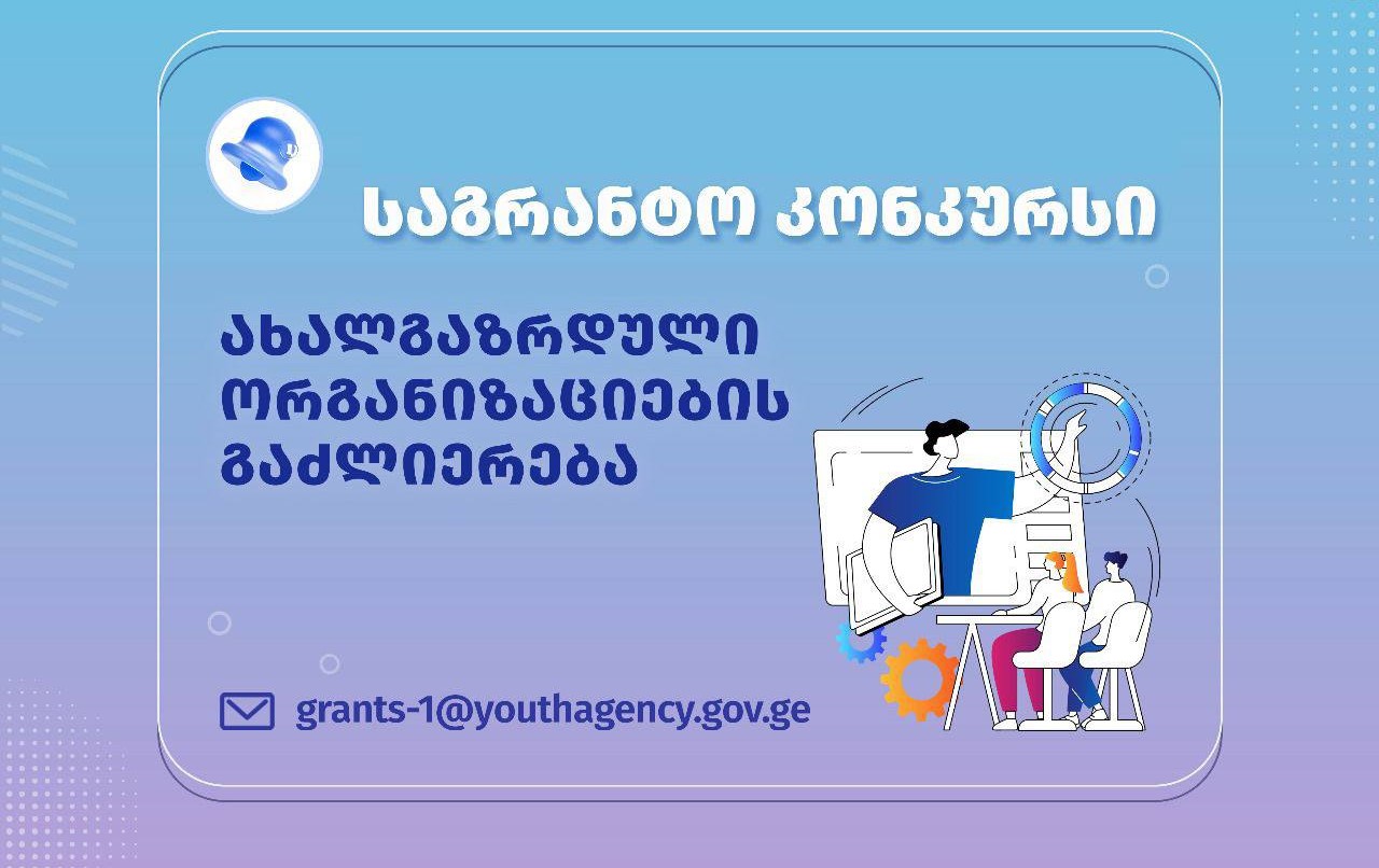 საკონკურსო განაცხადები 2025 წლის 31 აგვისტოს ჩათვლით, ელექტრონულ ფოსტაზე - grants-1@youthagency. gov. ge მიიღება.