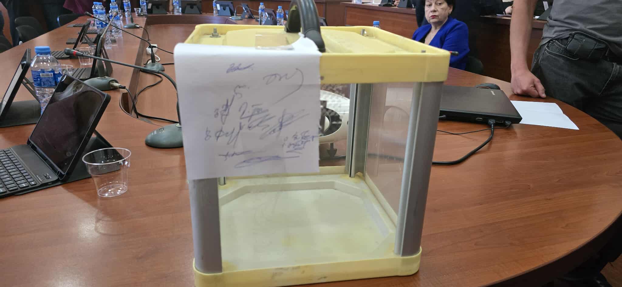 გორის მუნიციპალიტეტის საკრებულოს სხდომაზე, სადაც საკრებულოს თავმჯდომარის იმპიჩმენტის საკითხს განიხილავენ, ფარული კენჭისყრის პროცედურა იწყება.
