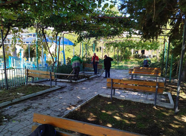 რაც შეეხება შესრულებულ სამუშაოებს, გაითიბა ბალახი, მოწესრიგდა გაზონები და განახლდა მწვანე საფარი.