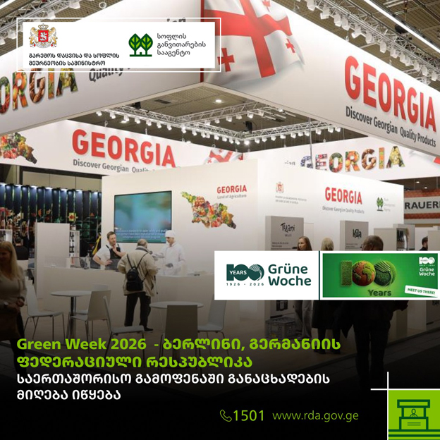 საერთაშორისო გამოფენაში - Green Week 2026 მონაწილეობის მისაღებად განაცხადების მიღება 16 ოქტომბერს 12:00 საათზე დაიწყება და 30 ოქტომბრის 18:00 საათის ჩათვლითაა შესაძლებელი.