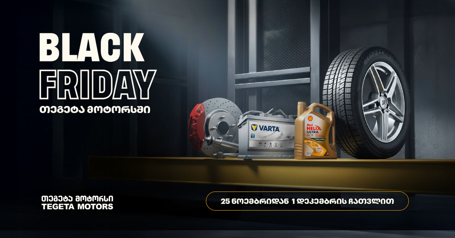 25 ნოემბრიდან 1 დეკემბრის ჩათვლით „თეგეტა მოტორსი“ მომხმარებელს განსაკუთრებული შეთავაზებებით მასპინძლობს. ავტომფლობელებს შესაძლებლობა აქვთ, ისარგებლონ აქციით კომპანიის ფილიალებში, რომლებიც მსუბუქ ავტომობილებს მთელი ქვეყნის მასშტაბით ემსახურებიან. კვირეულის ფარგლებში ფასდაკლებები დახვდებათ „თეგეტა მოტორსის“ ონლაინმაღაზიისა თუ აპლიკაციის მომხმარებლებს.