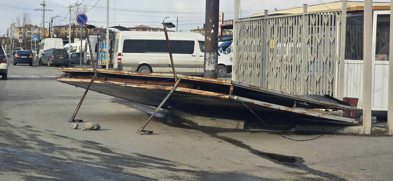 გორში, წმინდაწყლის ტერიტორიაზე, აგრარული ბაზრის გამოსასვლელთან, ქარმა რამდენიმე კვადრატული მეტრის მოცულობის სარეკლამო ბანერი მოგლიჯა და ძირს ჩამოაგდო.