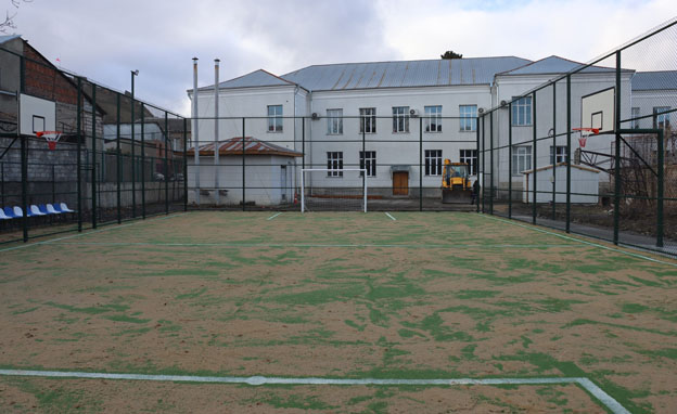 ამ ეტაპისთვის, მოედანზე უკვე დაგებულია ხელოვნური საფარი, დამონტაჟებულია ფეხბურთის კარები და კალათბურთის ფარები, მოწყობილია ღობე და ლითონის კარი.