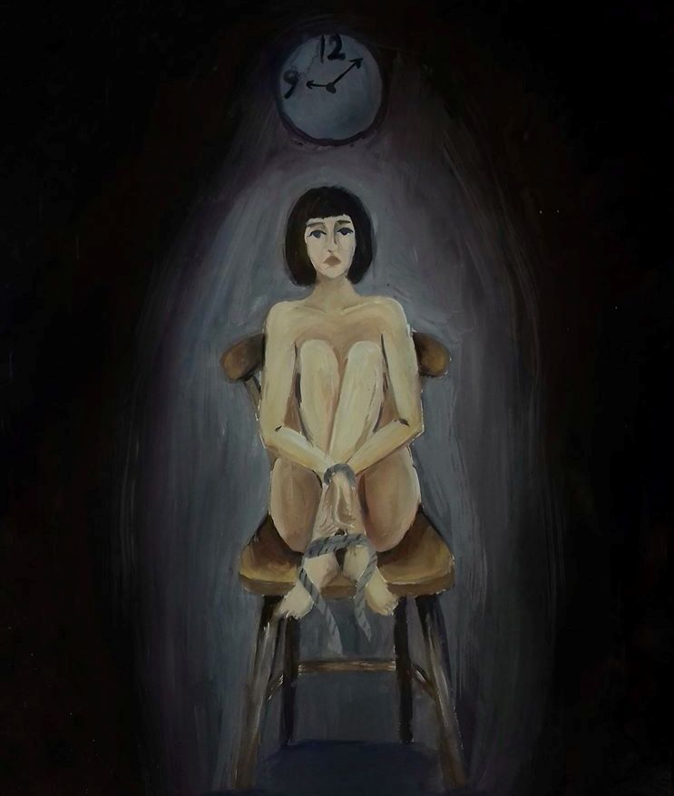 „ჩემი ART-ის შთაგონების წყარო კარანტინი და კომენდანტის საათი გახდა რომლის გამოც სულ სახლში ვარ და მგონია, ვიღაც უხილავი თავისუფლებას უკანონოდ მართმევს, შებოჭილი ვარ და ნახატზეც სწორედ ჩემი ეს გრძნობებია წარმოდგენილი. ქალი (ჩემი სახით) ზის სკამზე, მის ზემოთ კი, საათი ცხრას გადასცდა და თავისუფლად გადაადგილება აღარ შეუძლია. სწორედ ამიტომ აქვს მას ხელ-ფეხი შეკრული.