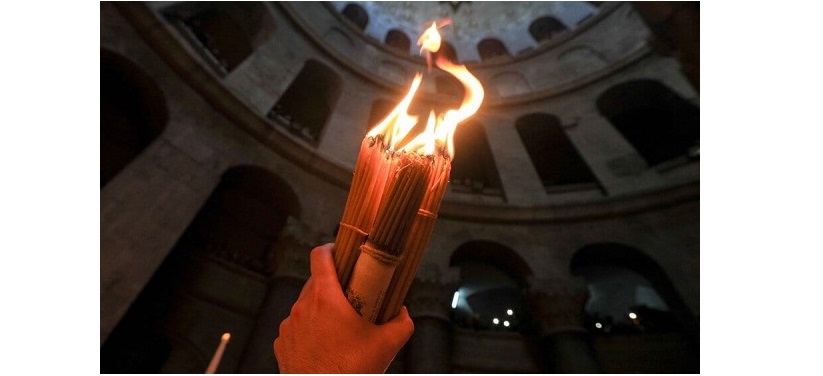 მაცხოვრის საფლავზე აღმართული სამლოცველოდან წმინდა ცეცხლი იერუსალიმისა და სრულიად პალესტინის პატრიარქმა გამოიტანა.