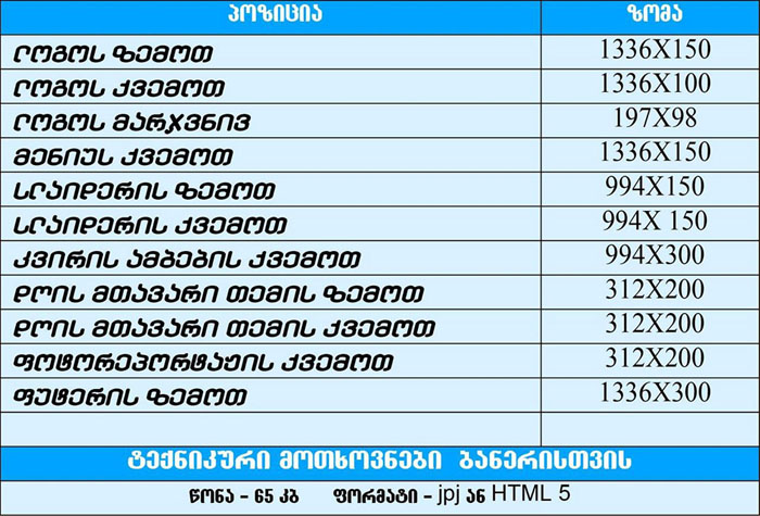 ფასი განისაზღვრება ინფორმაციის ან ბანერის განთავსების ხანგრძლივობის მიხედვით.