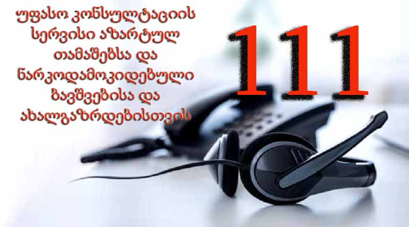 საქართველოში აზარტულ თამაშებზე და ნარკოდამოკიდებული ბავშვებისთვის და ახალგაზრდებისთვის უფასო კონსულტაციის სერვისი ამოქმედდა.