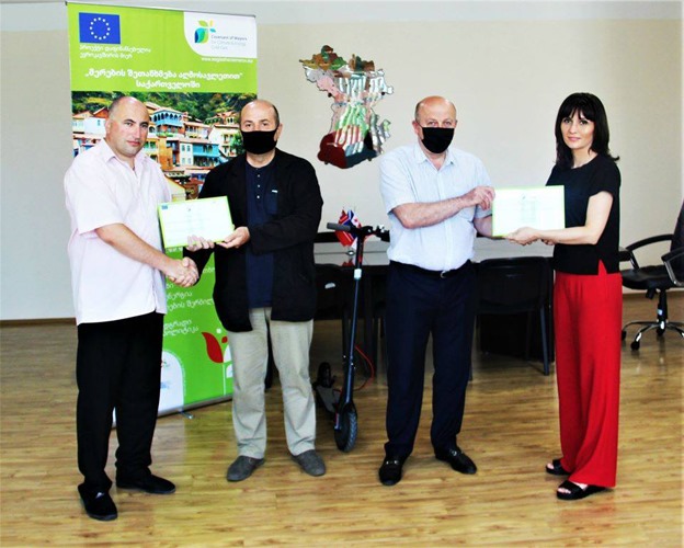 „მოგეხსენებათ, რომ გორის მერიამ მდგრადი ენერგეტიკის კვირეულის ფარგლებში გამართულ კონკურსში „საუკეთესო ონლაინ მდგრადი ენერგეტიკის დღე - 2020“ საპრიზო ადგილი მოიპოვა. დღეს კონკურსის ორგანიზატორები გვსტუმრობდნენ. მათ პირადად მოგვილოცეს წარმატება და საჩუქარად ეკოლოგიურად სუფთა გადადგილების საშუალება - თვითმგორავი და სერტიფიკატი გადმოგვცეს. სერტიფიკატრებით დაჯილდოვდნენ ასევე გორის მერიის ის თანამშრომლები, რომლებიც უშუალოდ ჩართულები იყვნენ ღონისძიებების ორგანიზებაში“, - აღნიშნა კონსტანტინე თავზარაშვილმა.