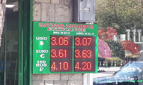 შეგახსენებთ, ახალი კორონავირუსის გავრცელების მასშტაბის შეზღუდვის მიზნით, საქართველოს მთავრობის გადაწყვეტილებით, ვალუტის გადამცვლელი პუნქტების მუშაობა 31 მარტიდან შეჩერდა და სავალუტო პუნქტებმა ფუნქციონირება 8 ივნისიდან განაახლეს.