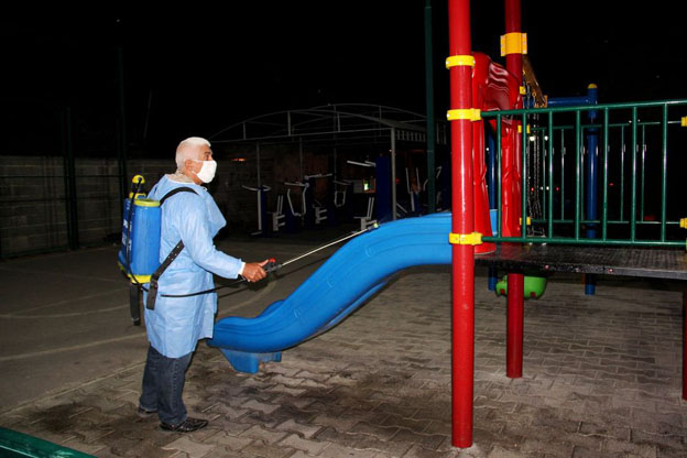„სპეციალური ხსნარებით მუშავდება საზოგადოებრივი თავშეყრის ადგილები, ატრაქციონები, ტრენაჟორები, სკამები, სავაჭრო ობიექტების მიმდებარე ტერიტორიები, მიწისქვეშა გადასასვლელები, მოსაცდელები და ა.შ.