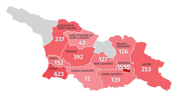ამ დროისთვის, რეგიონში ინფიცირებულთა რაოდენობა შეადგენს 3 159-ს, მათ შორის, 1 126 პაციენტი მკურნალობას გადის სახლში, თვითიზოლაციაში იმყოფება 2 237 პირი.