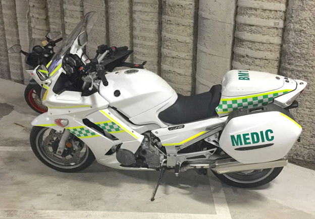 პირველადი სამედიცინო დახმარების აღმოსაჩენად მედიკოსები მოტოციკლით ივლიან პარამედიკოსები (სამედიცინო განათლების მქონე სპეციალისტები) გამოძახებაზე მოტოციკლით ივლიან.