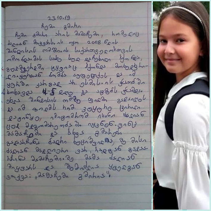 ,,ჩემი გმირი" - ამ სათაურით მიცემულ სასკოლო დავალებაში გოგონამ მამაზე დაწერა, რომელიც 2008 წლის რუსეთ-საქართველოს ომში მონაწილეობდა და გორის მუნიციპალიტეტში, სოფელ შინდისთან მომხდარი უთანასწორო შეტაკებისას, დაჭრილი ადგილობრივმა მაცხოვრებლებმა გადაარჩინეს სიკვდილს.