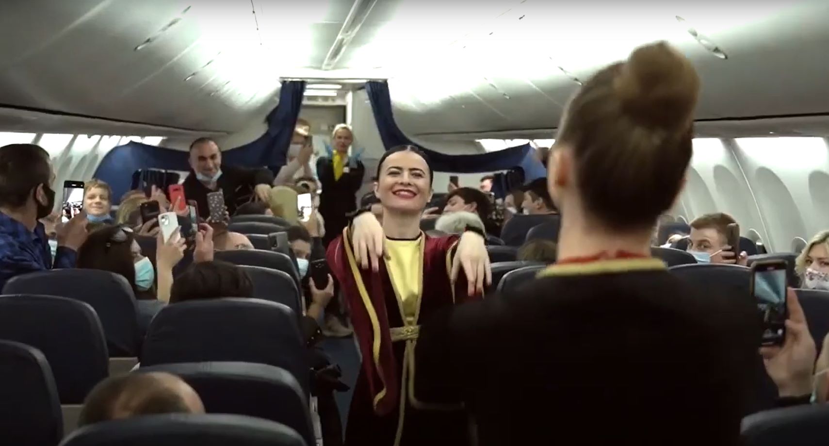 უკრაინის ავიახაზებმა თვითმფრინავის მგზავრებს და ანსამბლ „სუხიშვილებს“ სიურპრიზი მოუწყო