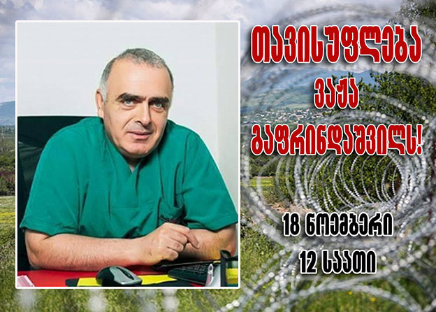 ,,თავისუფლება ვაჟა გაფრინდაშვილს! ორშაბათს, 18 ნოემბერს, 12 საათზე, ,,გორმედის“ ქსელის კლინიკების - გორის საუნივერსიტეტო კლინიკის, დედათა და ბავშვთა სამედიცინო ცენტრ ,,იავნანას“, ქარელის ცენტრალური საავადმყოფოს და ხაშურის კლინიკური საავადმყოფოს მედპერსონალი თეთრხალათიანთა აქციას უერთება და სამედიცინო დაწესებულებების წინ 5 წუთის განმავლობაში, ყველა ერთად დგომით, პროტესტს გამოხატავს საოკუპაციო ხაზთან ცნობილი ექიმის უკანონოდ დაკავების გამო და ყველა ერთად მოითხოვს ცნობილი ქართველი ექიმის, ტრავმატოლოგ-ორთოპედის გათავისუფლებას ცხინვალის საპატიმროდან", - აღნიშნულია ,,გორმედის" ადმინისტრაციის განცხადებაში.