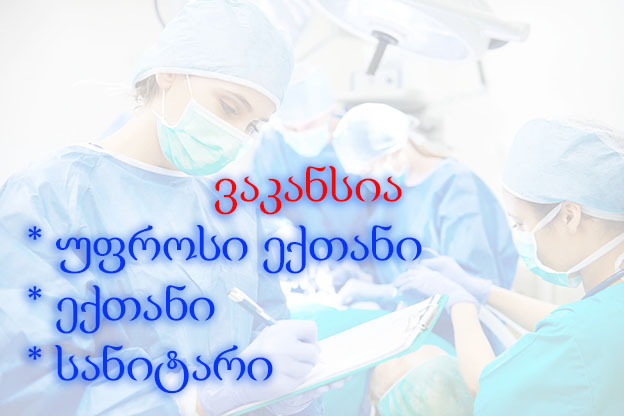 დაწესებულებას პერსონალი ესაჭიროება მიმღებ და თერაპიულ განყოფილებებში, ასევე, გამოცხადებულია ვაკანსია უფროსი ექთნის, ექთნებისა და სანიტრების პოზიციაზე.