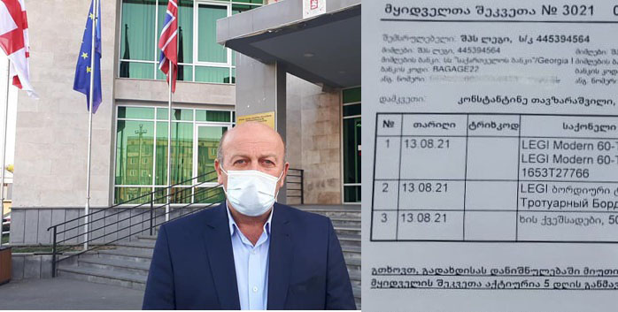 თავზარაშვილის ინფორმაციით, 302 კვ.მ. ოდენობის ფილები ფირმა ,,ლეგი“-სგან შეიძინა.