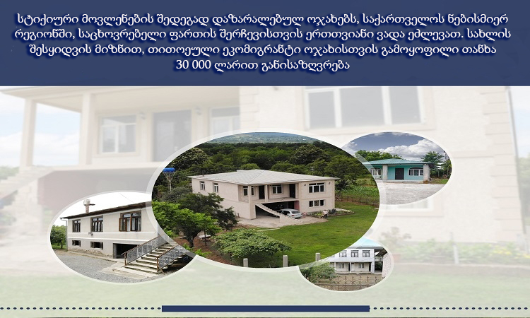 დევნილთა, ეკომიგრანტთა და საარსებო წყაროებით უზრუნველყოფის სააგენტო სტიქიური მოვლენების შედეგად დაზარალებულ კიდევ 130 ოჯახს სახლს შეუსყიდის.