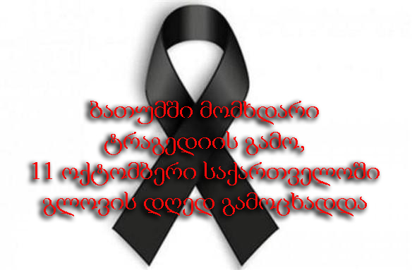 პრემიერ-მინისტრის გადაწყვეტილებით, ბათუმში მომხდარი ტრაგედიის გამო, 11 ოქტომბერი საქართველოში გლოვის დღედ გამოცხადდა.