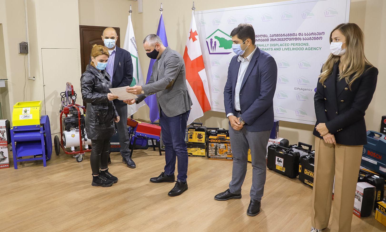 დევნილთა, ეკომიგრანტთა და საარსებო წყაროებით უზრუნველყოფის სააგენტოს დირექტორმა ემიგრაციიდან დაბრუნებულ საქართველოს მოქალაქეებს შემოსავლის წყაროს გაჩენისა და თვითდასაქმების ხელშეწყობის მიზნით ტექნიკა-დანადგარები და ხელსაწყოები გადასცა. სამშობლოში დაბრუნებულმა მიგრანტებმა საკუთარი საქმიანობის წამოწყებისა თუ გაფართოებისთვის საჭირო ინვენტარი თავადვე შეარჩიეს.