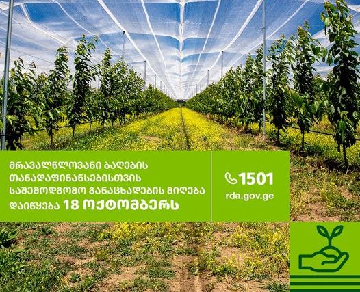 მრავალწლოვანი ბაღების გაშენებით დაინტერესებული პირებისთვის, სოფლის განვითარების სააგენტო კიდევ ერთი სახელმწიფო პროგრამის განხორციელებას დღეიდან იწყებს.