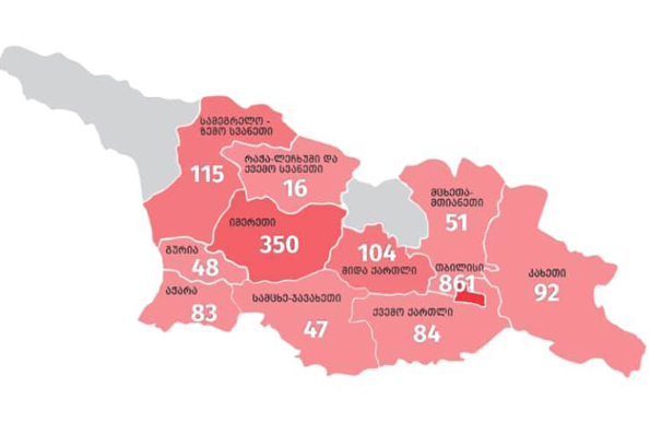 დღეს ქვეყანაში გამოვლენილი ინფიცირების 1 851 ახალი შემთხვევიდან თბილისში გამოვლენილია 861 შემთხვევა, აჭარა - 83, იმერეთი - 350, ქვემო ქართლი - 84, შიდა ქართლი - 104, გურია - 48, სამეგრელო - ზემო სვანეთი - 115, კახეთი - 92, მცხეთა-მთიანეთი - 51, სამცხე-ჯავახეთი - 47, რაჭა-ლეჩხუმი და ქვემო სვანეთი -16.
